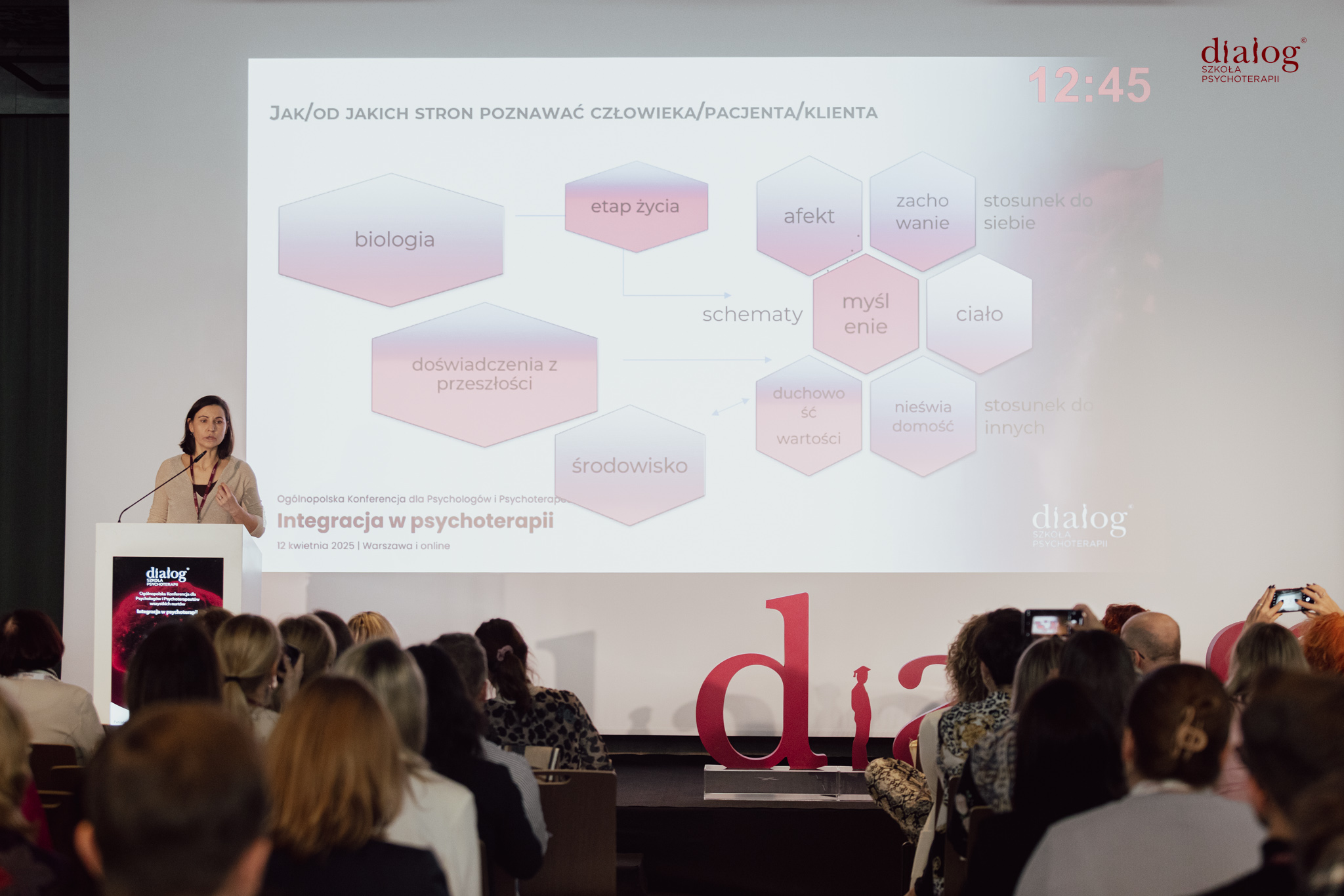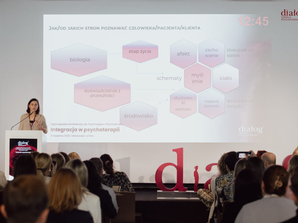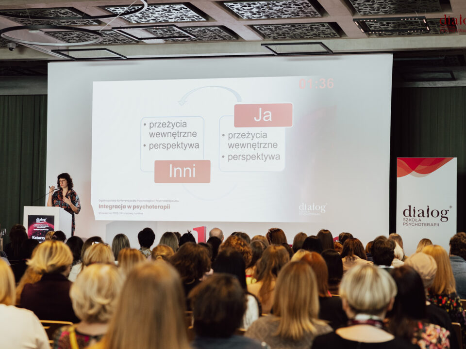Prelegenci — wykładowcy Szkoła Psychoterapii Dialog oraz profesor Irena Namysłowska – pierwsza Kierowniczka merytoryczna Szkoły – mówili o ciekawych narzędziach wykorzystywanych w różnych nurtach terapeutycznych i pokazywali, jak można z nich korzystać, integrować je i dzięki temu jak najlepiej pomagać pacjentom.